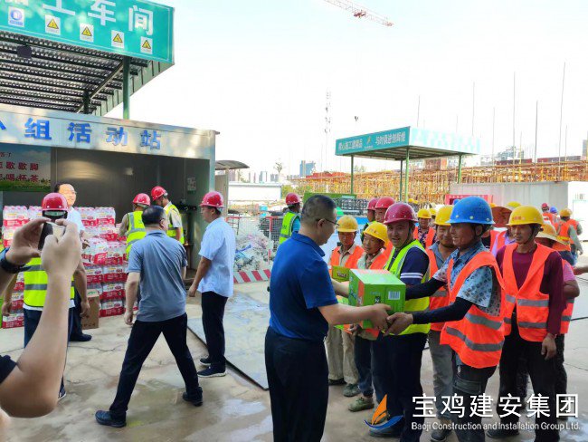 7月18日上午,寶雞高新區(qū)管委會(huì)黨工委委員、管委會(huì)副主任楊海翔,高新區(qū)總工會(huì)主席李廣強(qiáng),區(qū)教育系統(tǒng)黨委書記、教育體育局局長唐宏,副局長劉輝等一行領(lǐng)導(dǎo),前往建安集團(tuán)承建的寶雞高新第三幼兒園建設(shè)項(xiàng)目工地,走訪慰問一線員工,開展“夏送清涼”活動(dòng)。