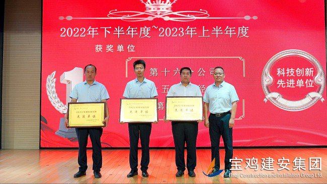 為激勵先進、樹立榜樣,會議第二項由質(zhì)量部經(jīng)理韓宇龍宣讀了《關(guān)于表彰2022下半年至2023上半年科技成果獎勵、科技創(chuàng)新先進單位、BIM推廣應(yīng)用先進單位的決定》并主持頒獎。2022下半年~2023上半年度共獲得省級QC一類成果3項,省級QC二類成果5項,省級QC三類成果4項,實用新型專利17項,各類BIM獎項7項,并授予第十六分公司、第十五項目經(jīng)理部、第四分公司為科技創(chuàng)新先進單位榮譽,授予西安分公司為BIM推廣應(yīng)用先進單位榮譽??偨?jīng)理胥永寧及公司相關(guān)領(lǐng)導為獲獎單位頒發(fā)了獎勵。