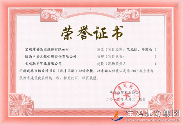 民豐國際 省優(yōu)質結構工程