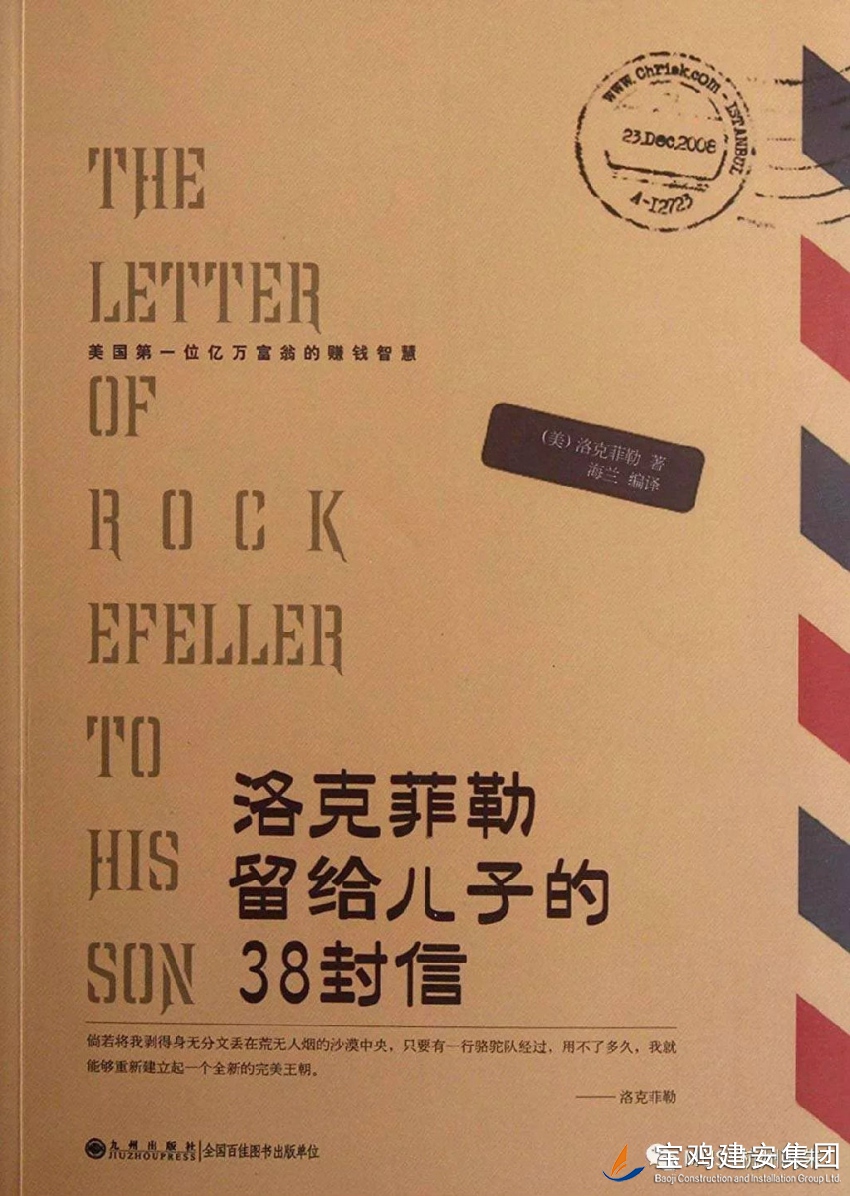 單位:第八項目部 作者:張兆陽 中國有句古話:至樂莫若讀書,至要莫若教子。如何教育引導好年輕人,長久以來都是世界各個階級父母所關注的話題。洛克菲勒,標準石油公司創(chuàng)立者、全球首富。2009年福布斯公布“美國史上十五大富豪”,洛克菲勒名列榜首。這樣一個商業(yè)巨擘,同樣也在研究如何指引年輕一代。在這本書中,就淋漓盡致地呈現(xiàn)出了他對教育的見解。